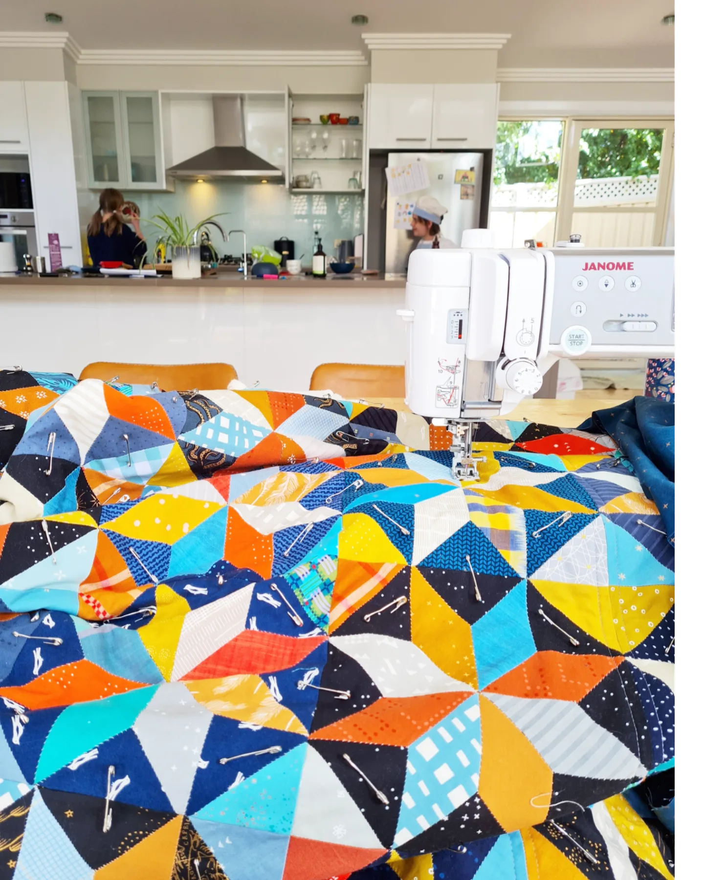 When your quilty works in progress (WIPs) start to overwhelm you, choose the easiest-to-finish quilt, and take it across the line! Easy progress is a great motivation boost for making further progress.